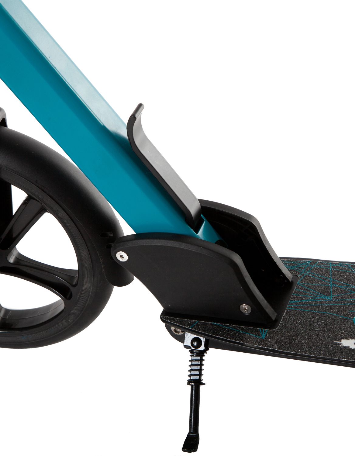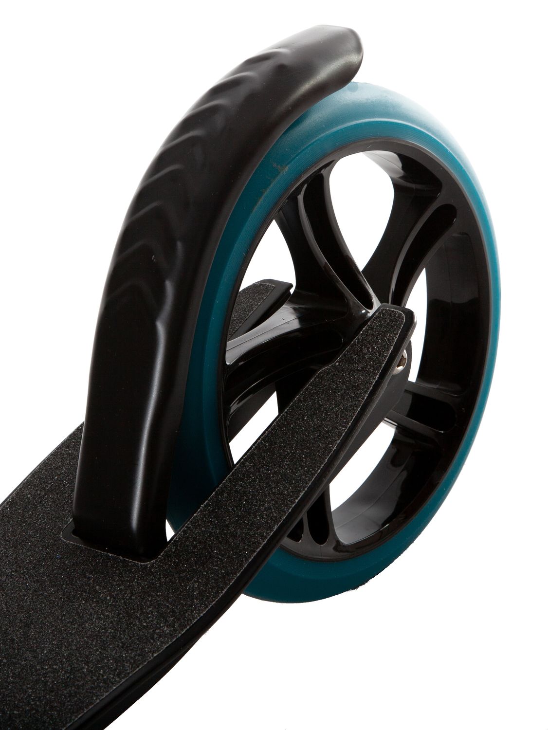 Диаметр переднего колеса составляет 230 мм, заднего — 200 мм. Они выполнены из полиуретана, устойчивого к низким температурам и механическим повреждениям. Торможение осуществляется за счет нажатия ногой на заднее крыло. Предусмотрена регулировка руля по высоте. Класс подшипников — ABEC-7.