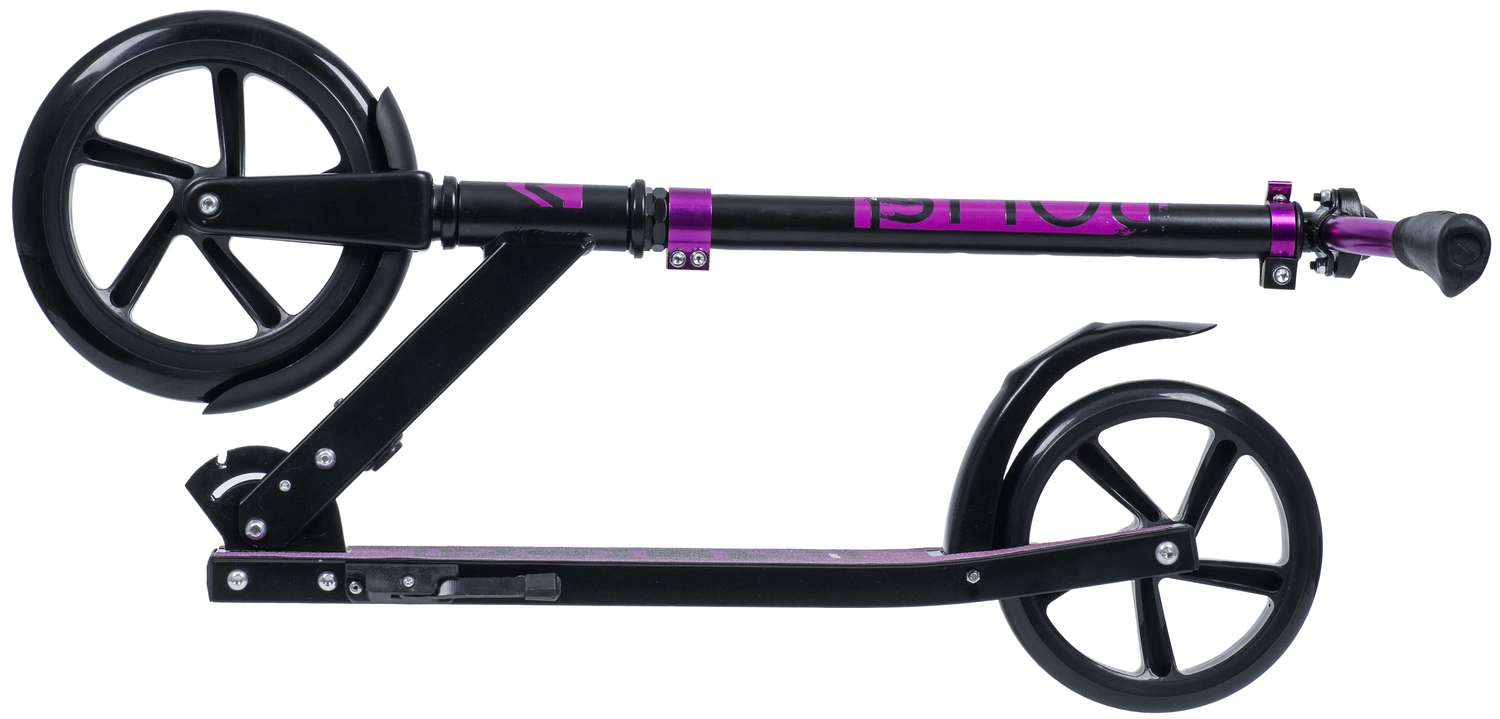 Novatrack Polis 230 PRO - алюминиевый самокат, оборудованный удобным механизмом складывания с помощью одной кнопки и износостойкими полиуретановыми колесами. Широкая асимметричная платформа с концепцией одностороннего крепления заднего колеса и противоскользящим покрытием позволит удобно и безопасно разместиться как ребенку, так и взрослому весом до 100 кг. Регулируемый по высоте эргономичный Y-образный руль обеспечит комфортный хват. Благодаря большому переднему колесу модель запросто преодолеет плитку или брусчатку, которой застелены центральные улицы или парковые дорожки.