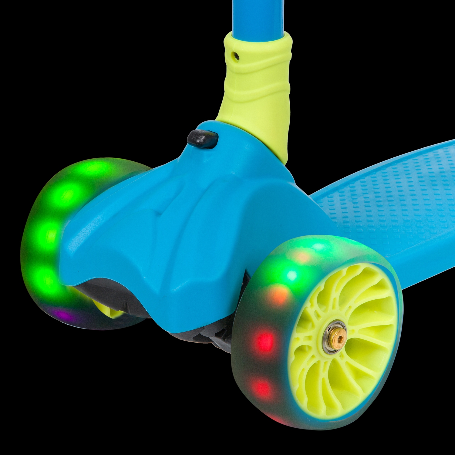 Novatrack RainBow - детский трёхколесный самокат-кикборд, предназначенный для детей от 3 лет. Cветящиеся при движении колеса обязательно обрадуют вашего ребенка и сделают его более заметным в темное время суток. Модель оснащена удобным кнопочным механизмом регулировки и складывания руля. Самокат выдерживает вес до 50 кг.