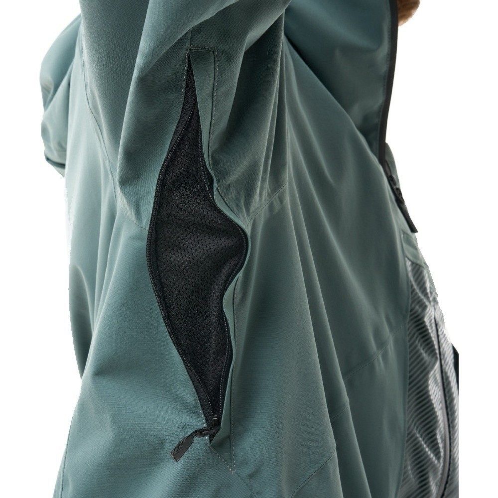 Функциональные характеристики куртки делают её незаменимым элементом сноубордического снаряжения. Несъёмный капюшон с утяжкой и регулировкой по высоте надёжно защищает от ветра и снега. Двухзамковая влагозащитная молния, укрытая внутренней планкой, предотвращает попадание влаги внутрь, а вентиляция под рукавами позволяет поддерживать оптимальный температурный баланс во время катания.