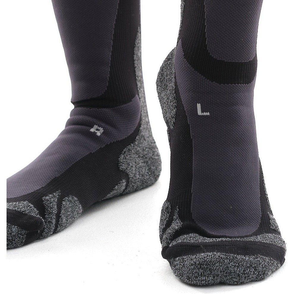 Эргономичная посадка носка комфортно облегает ногу и поддерживает свод стопы, снижая нагрузку на мышцы и улучшая кровообращение. Плетение повышенной плотности в области пальцев отвечает за дополнительную защиту, а удобная резинка надежно фиксируется, не пережимая голень.