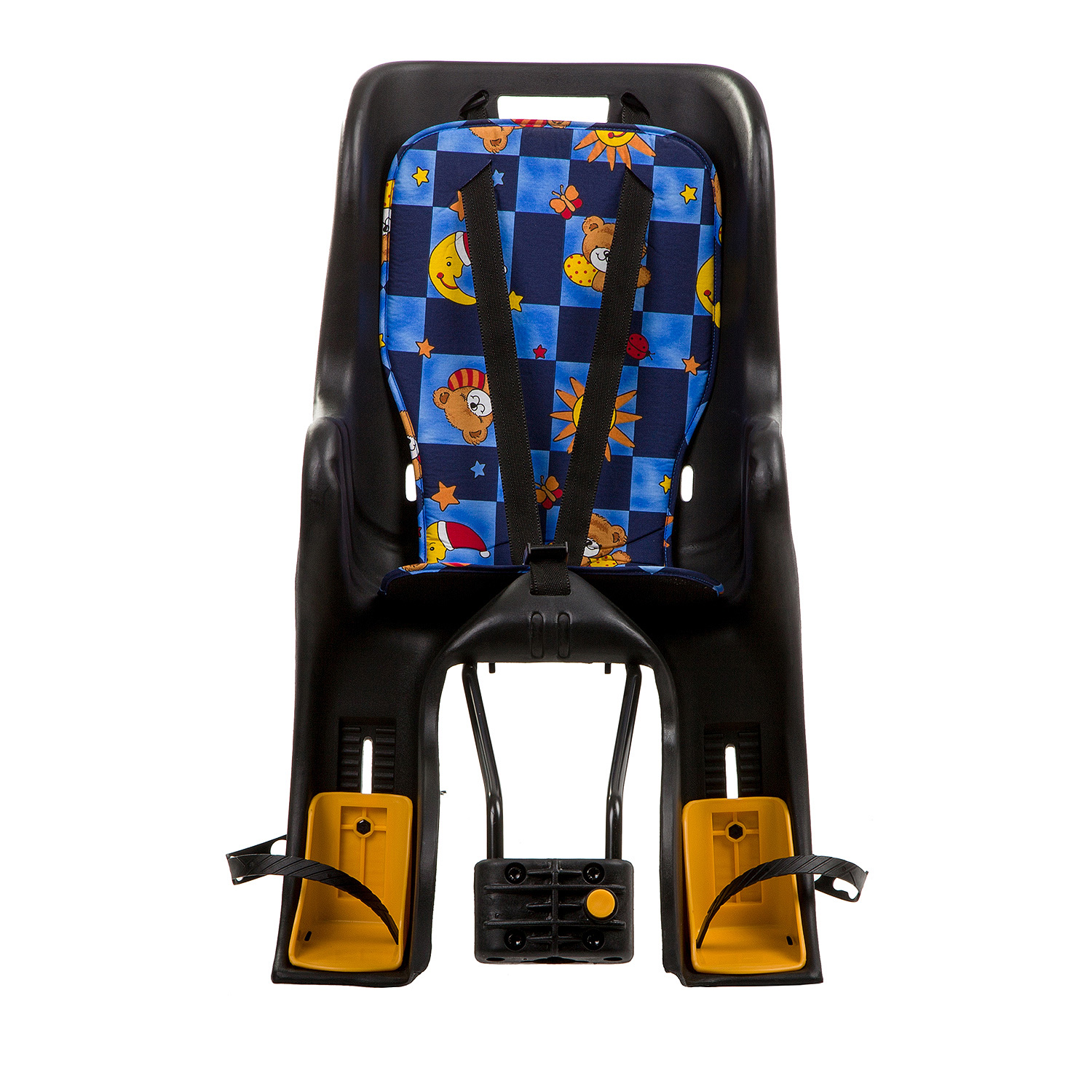 Эта модель детского велосипедного кресла монтируется на подседельную трубу с помощью быстросъемного механического крепления. Сиденье оборудовано надежными трехточечными ремнями безопасности и фиксаторами для ног, которые регулируются по высоте. В качестве дополнительного средства безопасности предусмотрена подъемная металлическая дуга. Мягкий чехол сделан из качественного моющегося материала.
