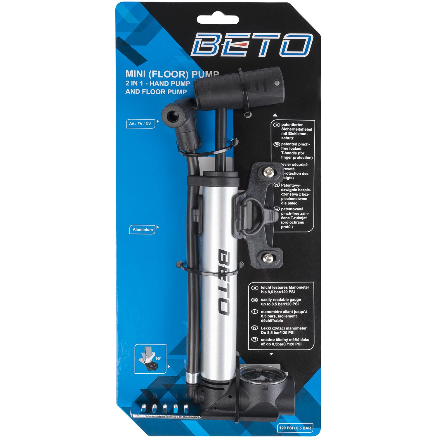 Насос BETO, алюминий, ножной упор с манометром, универсальная головка, Т-ручка, 5-470235