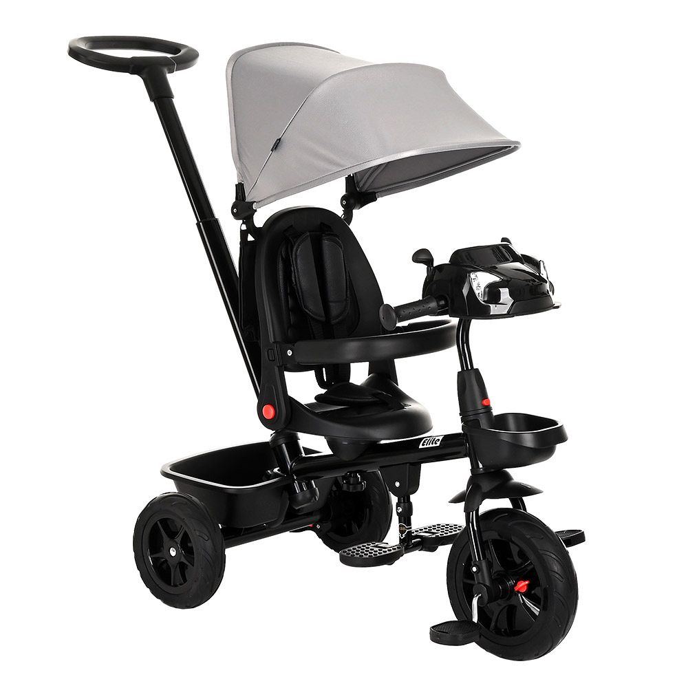 Родители могут управлять велосипедом сами или позволить ребенку крутить педали и поворачивать рулем. Велосипед растет вместе с ребенком, поэтому для ребенка постарше снимается бампер, капюшон, родительская ручка.