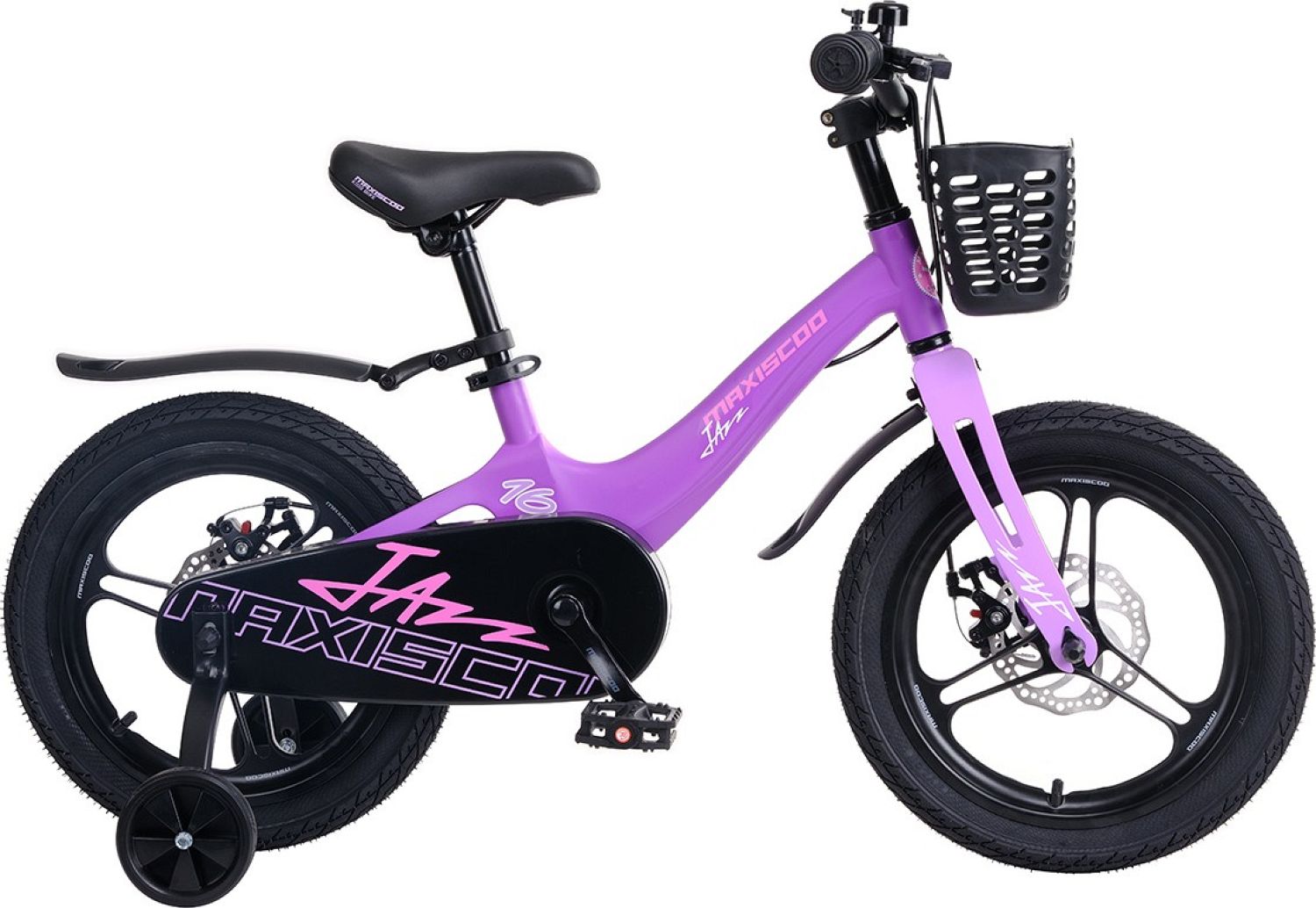 В комплекте с велосипедом идут корзинка, боковые колеса, крылья и звонок, а также полная защита цепи. Это гарантирует дополнительную безопасность и комфорт при езде, позволяя ребенку наслаждаться своими приключениями на велосипеде Maxiscoo JAZZ Pro 16" (2024). Погрузитесь в мир джазовых мелодий и веселья, педалируя на этом велосипеде, который станет верным спутником вашего ребенка в музыкальных приключениях.