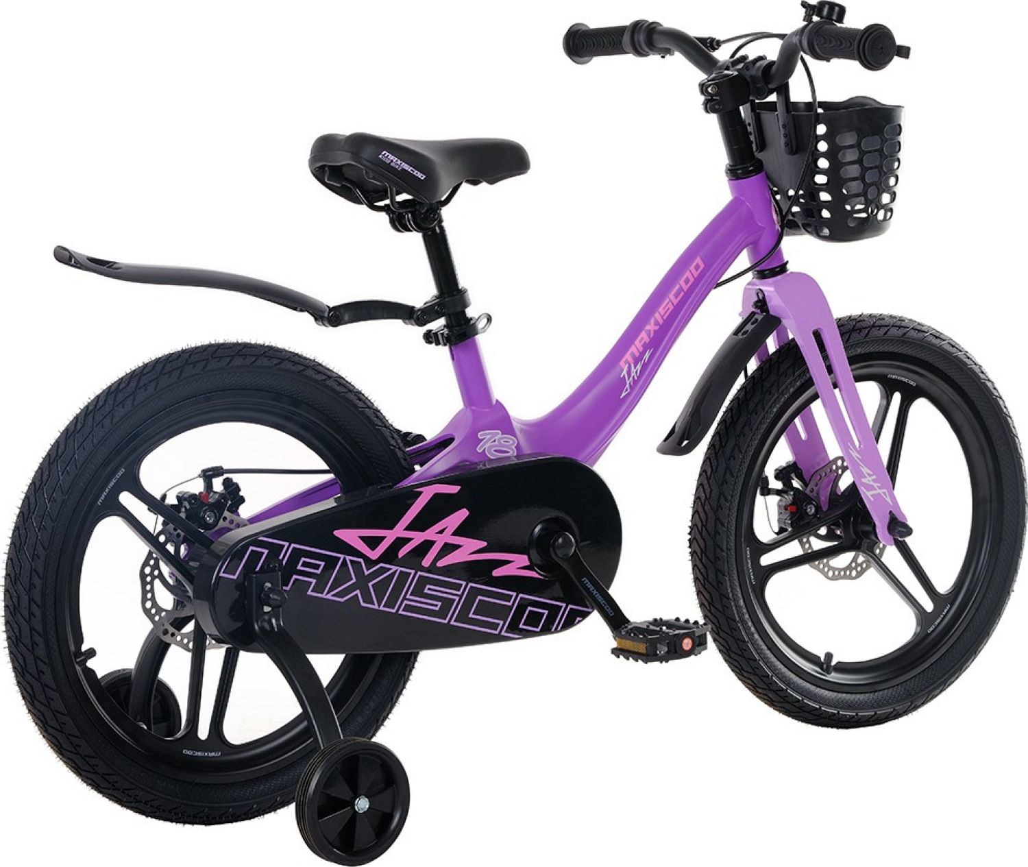 В комплекте с велосипедом идут корзинка, боковые колеса, крылья и звонок, а также полная защита цепи. Это обеспечивает дополнительную безопасность и комфорт при езде, позволяя ребенку наслаждаться своими приключениями на велосипеде Maxiscoo JAZZ Pro 18" (2024). Погрузитесь в мир джазовых мелодий и веселья, педалируя на этом велосипеде, который станет верным спутником вашего ребенка в музыкальных приключениях.