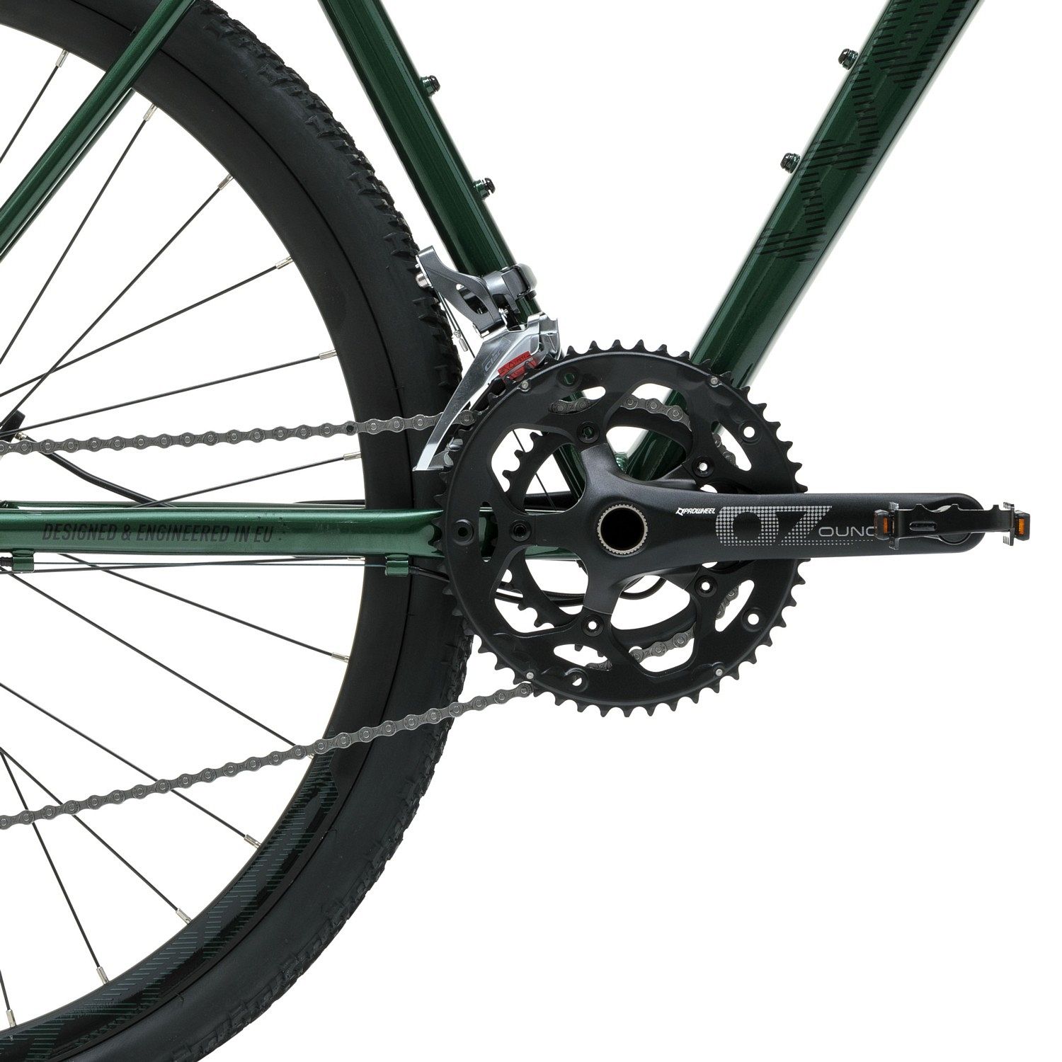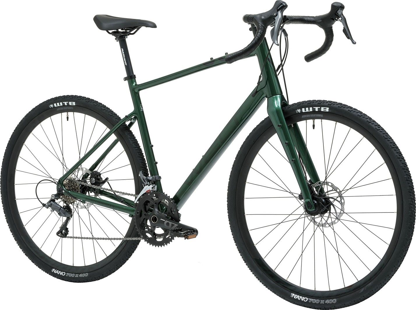 Система 16-скоростной трансмиссии Shimano Claris позволяет плавно и четко переключать передачи, а дисковые механические тормоза Tektro C310 MD дают надежное и эффективное торможение в любых условиях. Втулки на промышленных подшипниках делают ход более плавным, а педалирование легким. Велосипед оснащен двойными алюминиевыми ободами, которые совместимы с бескамерными покрышками. Широкие покрышки WTB Nano 40с обеспечивают низкое сопротивление качению для высокой скорости и накат на твердом грунте, а также отличное сцепление на поворотах и снижение вибраций на трассе. Руль-баран с флейром в 20° добавляет контроля при езде и обеспечивает более легкое управление тормозами. Легкая система Prowheel с шатунами из кованого алюминия и полой осью обеспечивает надежность и сверхмалый вес.