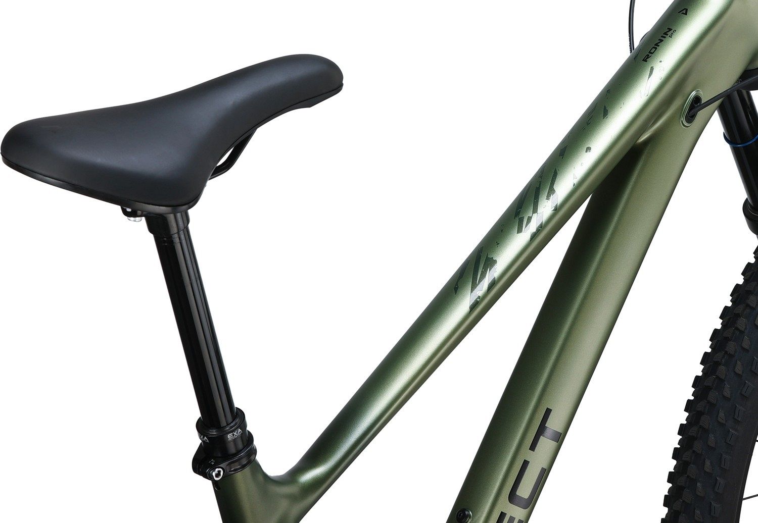 Ronin Pro построен на базе прочной алюминиевой рамы из сплава 7005 с гидроформованными трубами и двойным баттингом. Конический рулевой стакан, невидимые сварные швы и внутренняя проводка добавляют раме не только прочности, но и эстетичности. Возможность установки дроппера и асимметричные дропауты с креплением тормоза на нижнем пере (PM), стандарт оси Boost 148х12, делают этот велосипед ещё более универсальным и удобным в эксплуатации.
