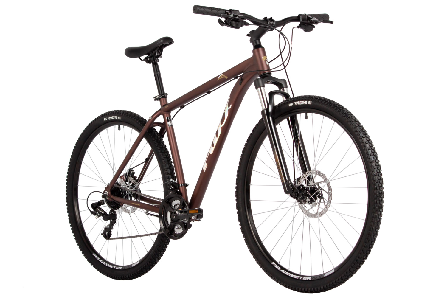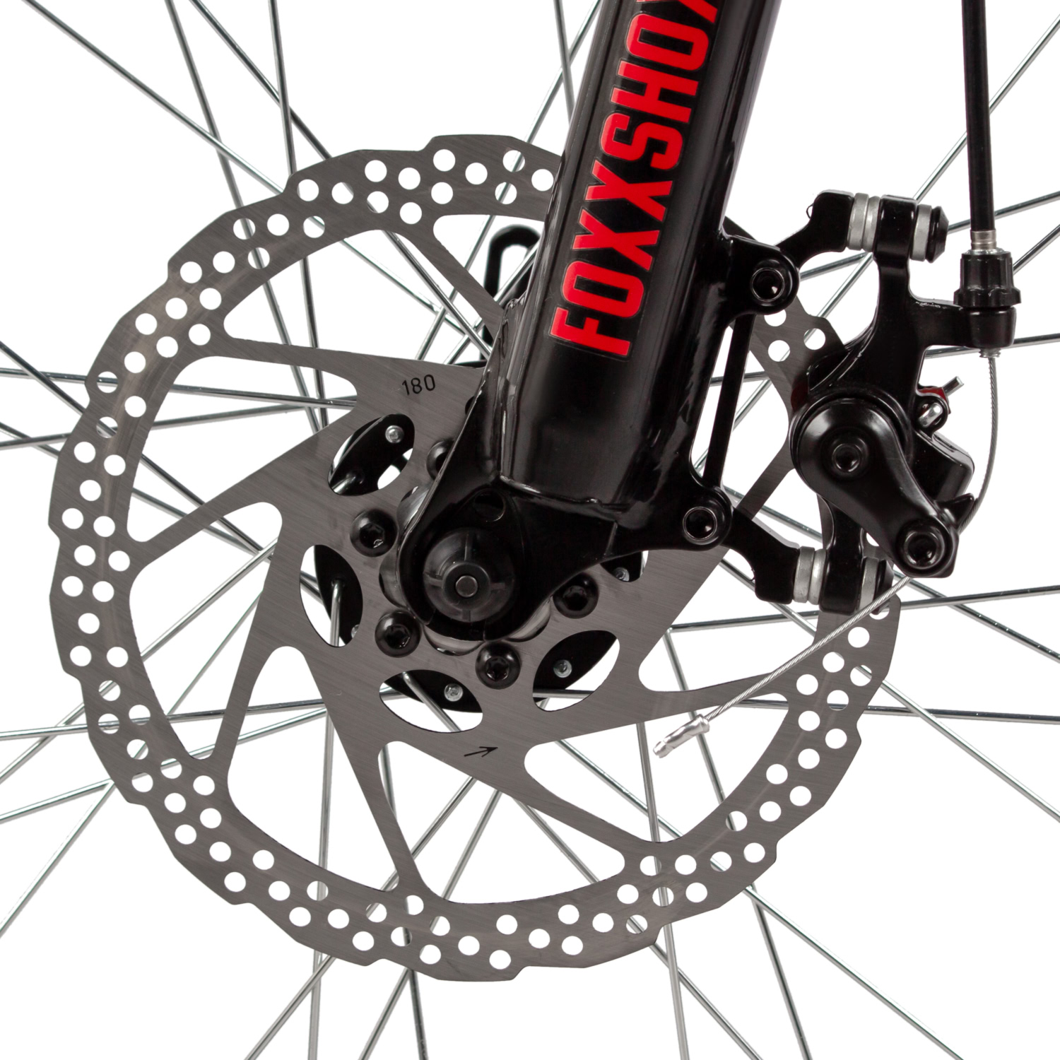 – Пружинная вилка Foxxshox с ходом 100 мм для комфорта на неровностях.