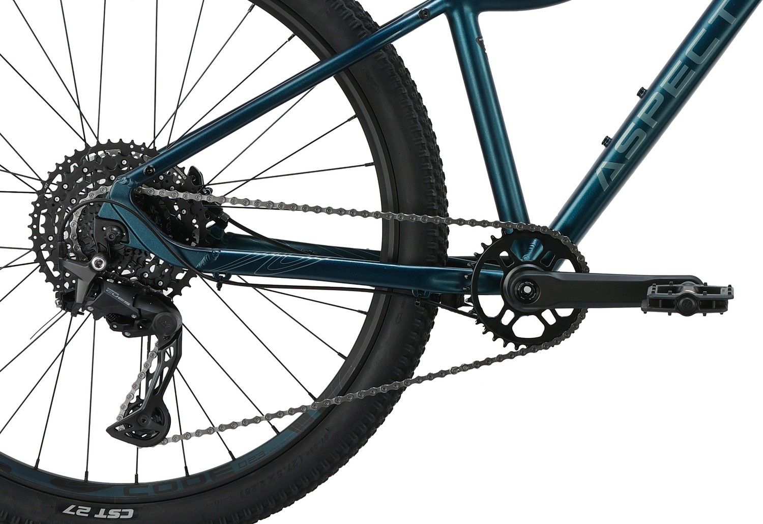 Aspect Aura Pro 27.5 (2025) оснащён лёгкой и прочной алюминиевой рамой ALU 6061 с гидроформированием, внутренней прокладкой тросов и гладкими сварными швами. Воздушно-масляная вилка GTMRK 367 AIR/HLO с ходом 100 мм и анодированными алюминиевыми верхними трубами отвечает за непревзойдённый комфорт и контроль на любой поверхности. Велосипед имеет 10 скоростей и задний переключатель Shimano Cues, что позволяет легко адаптироваться к различным условиям езды.