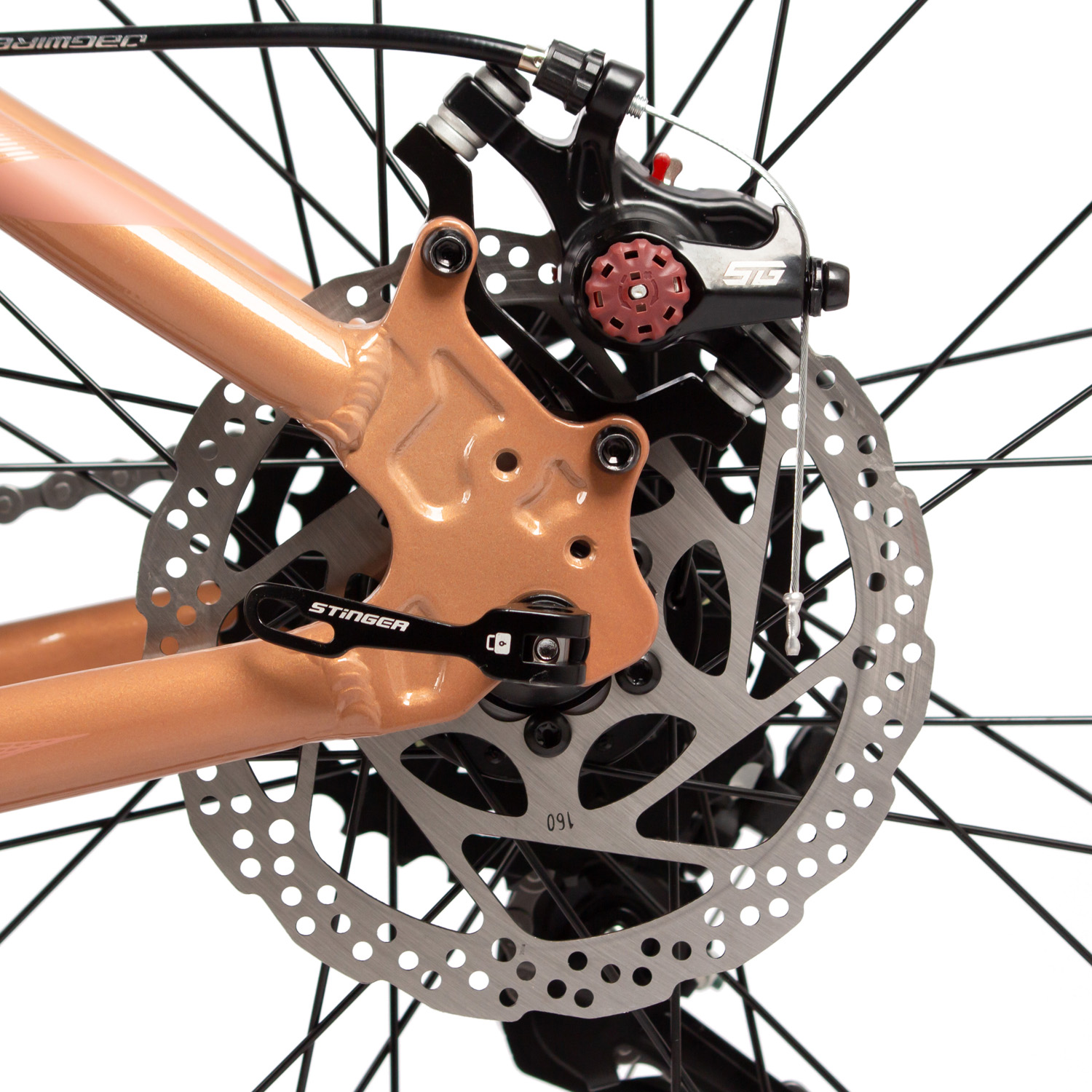 – Пружинная вилка STG Spice с ходом 110 мм для комфортного катания по неровным поверхностям.