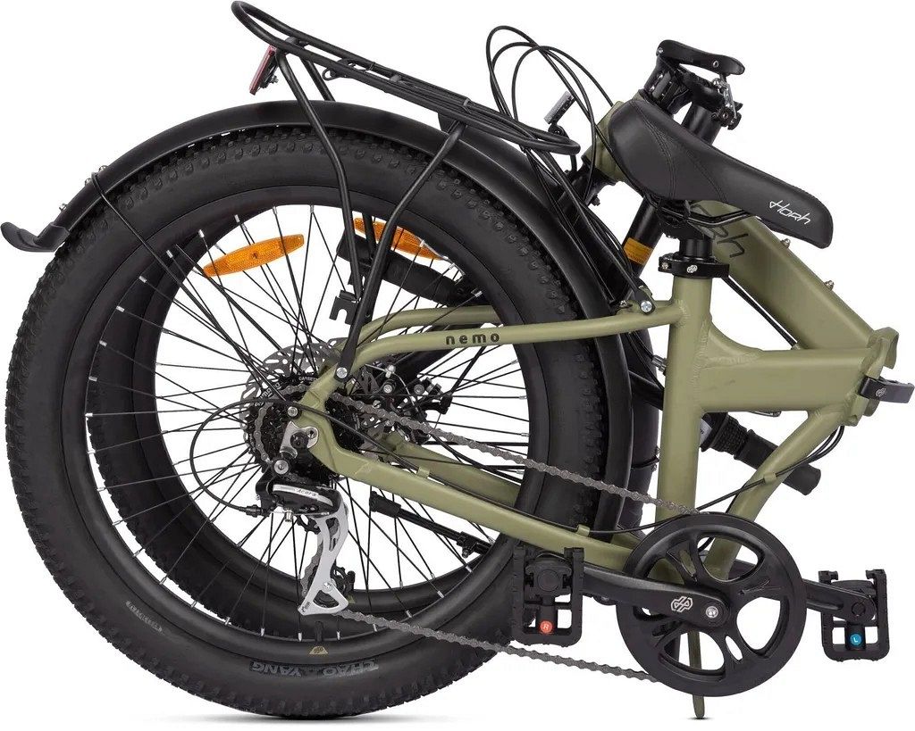 Horh Nemo 24 также оснащён складными педалями, которые занимают ещё меньше места и имеют простой механизм складывания. Педали выполнены из ударопрочного пластика, а их большая площадь и ребристая поверхность предотвращают соскальзывание обуви. Складной руль и малый диаметр колёс (24 дюйма) позволяют легко хранить велосипед в ограниченном пространстве.