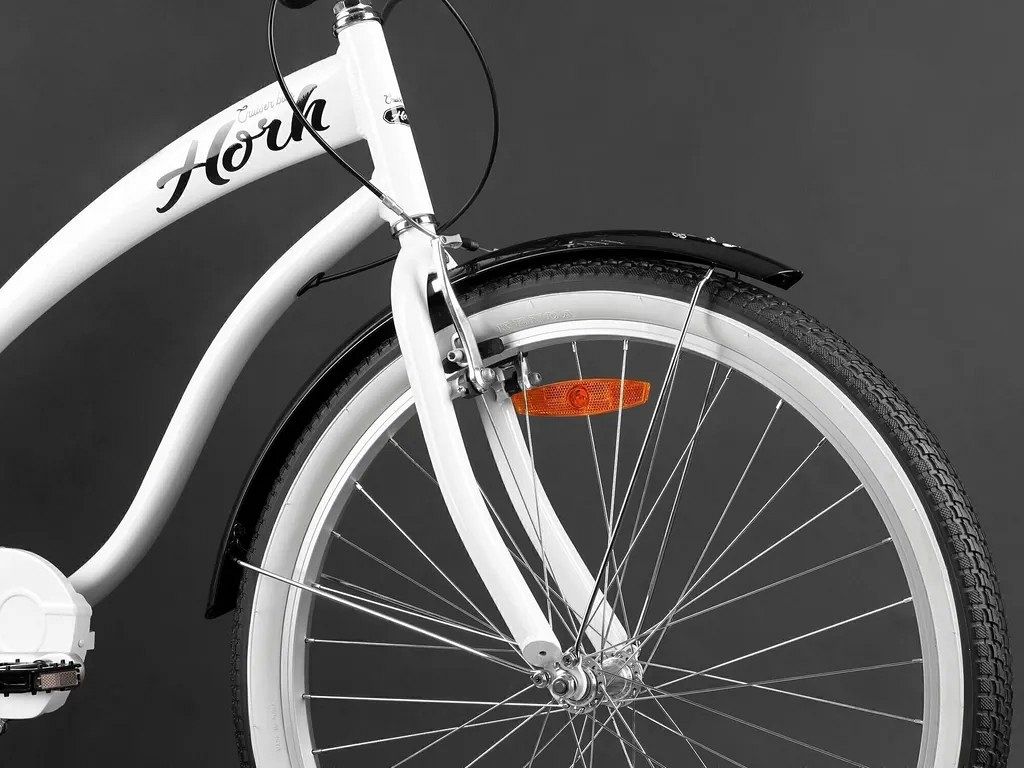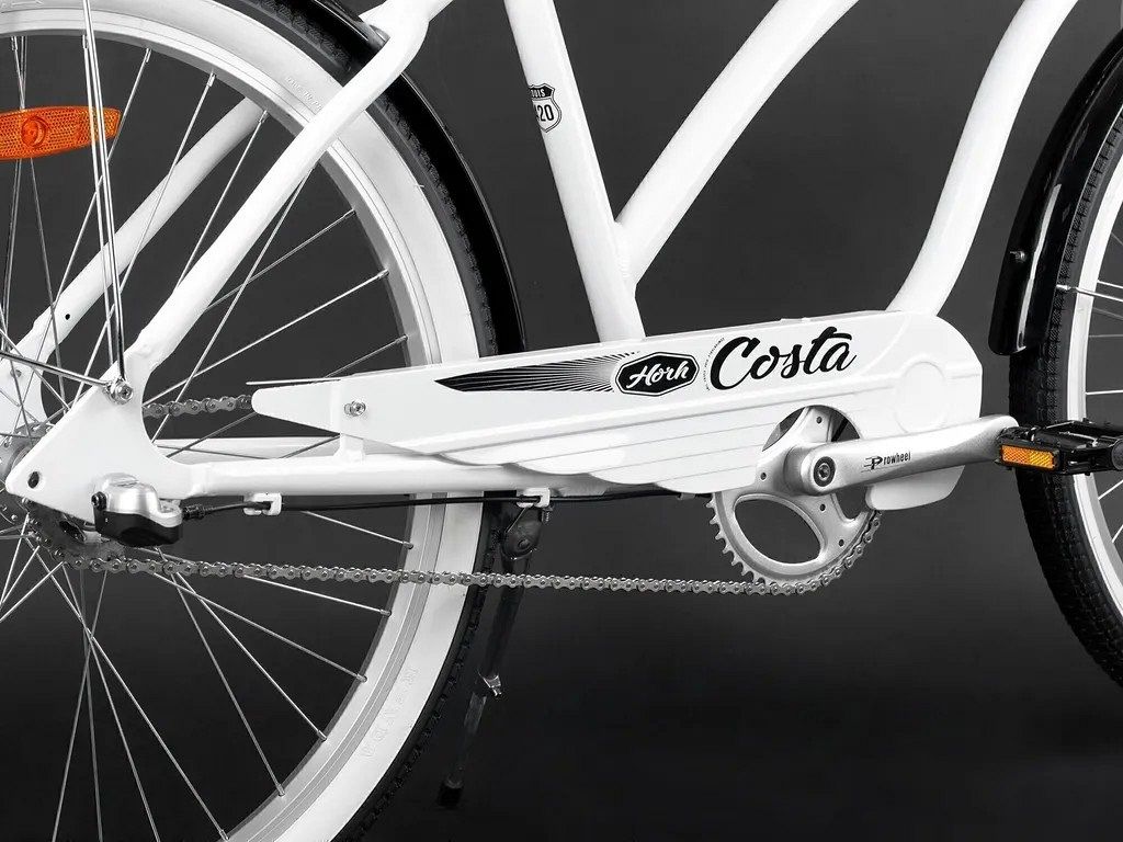 Horh Costa 26 оснащён 3-скоростной планетарной трансмиссией Shimano Nexus, которая позволяет легко подбирать оптимальный режим педалирования в различных дорожных условиях. Это особенно удобно для городских поездок, где часто приходится менять скорость в зависимости от рельефа и интенсивности движения. Широкое сиденье с пружинами, выполненное с учётом анатомии, отвечает за комфорт даже при длительном катании, избавляя от дискомфорта и усталости.