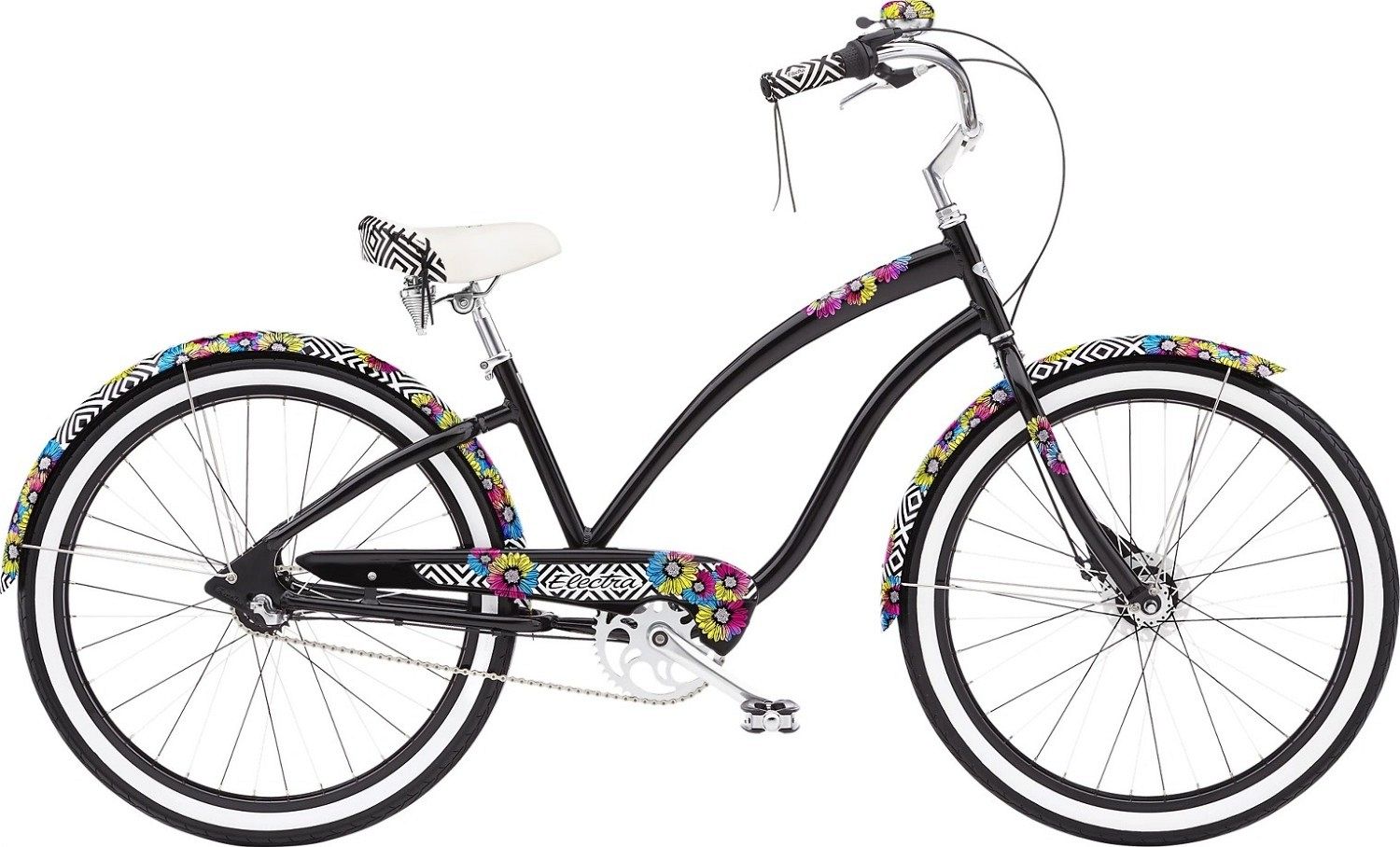 Обода из окрашенного сплава и покрышки RetroRunner размером 26"x2.125" обеспечивают отличное сцепление с дорогой и плавный ход. Руль Electra Cafe и кастомные грипсы создают комфортные условия для управления, а седло Electra Comfort с двойными пружинами дает максимальный комфорт даже при длительных поездках.