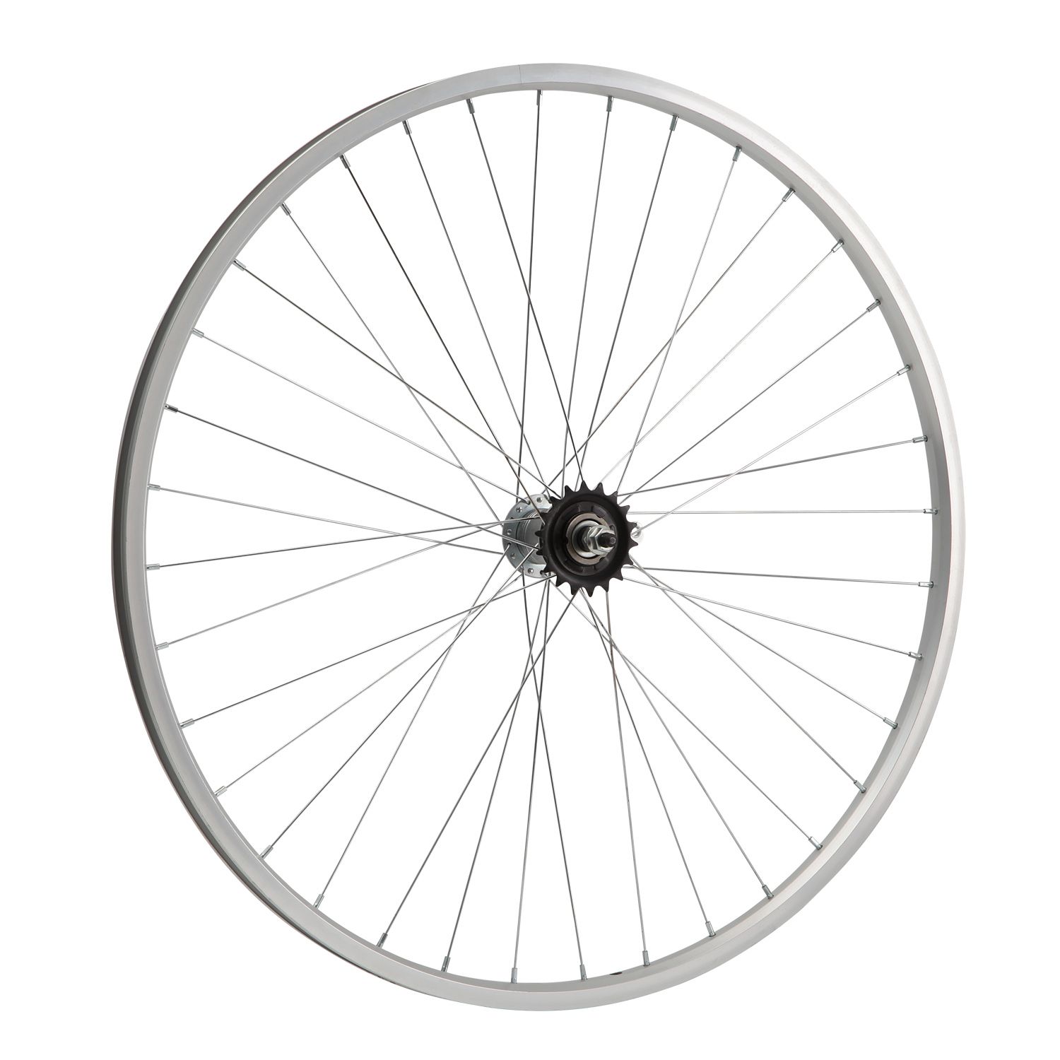 Колесо 28" заднее в сборе(без резины) с одинарным алюминиевым ободом на 36 спиц со втулкой под гайку.