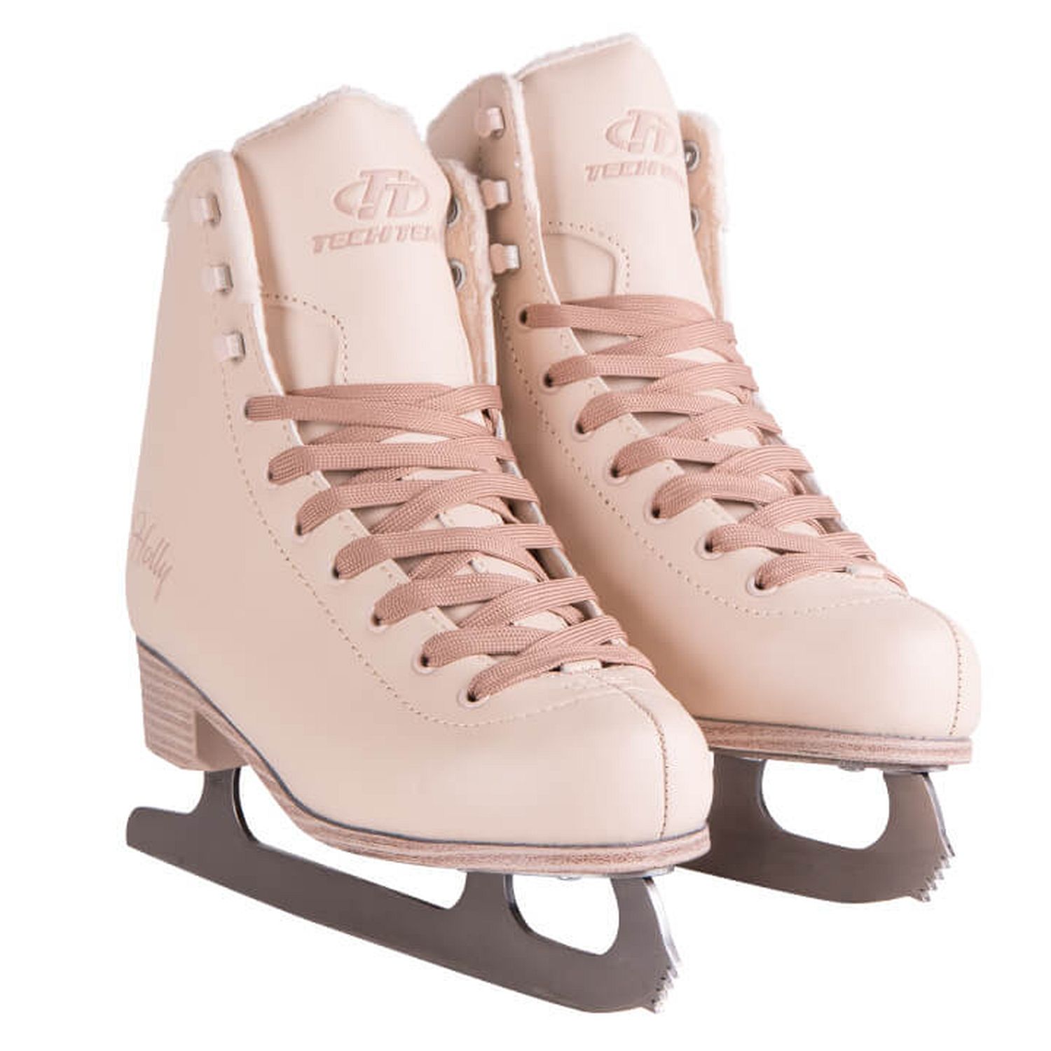 Практичные женские фигурные коньки с ботинком из морозостойкой искусственной кожи и подкладкой из короткого синтетического меха.