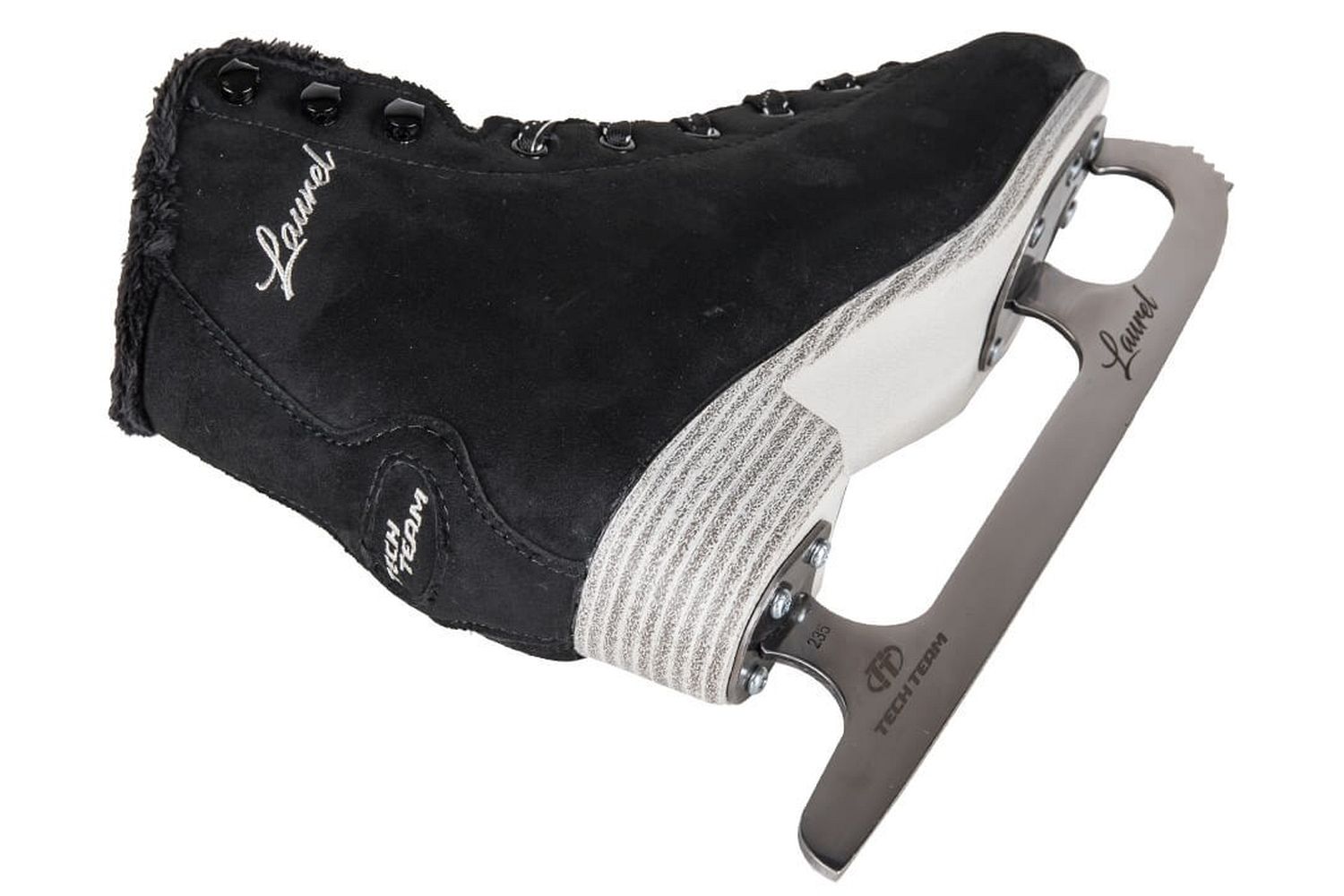 Практичные женские фигурные коньки с ботинком из морозостойкой искусственной кожи и подкладкой из синтетического меха.