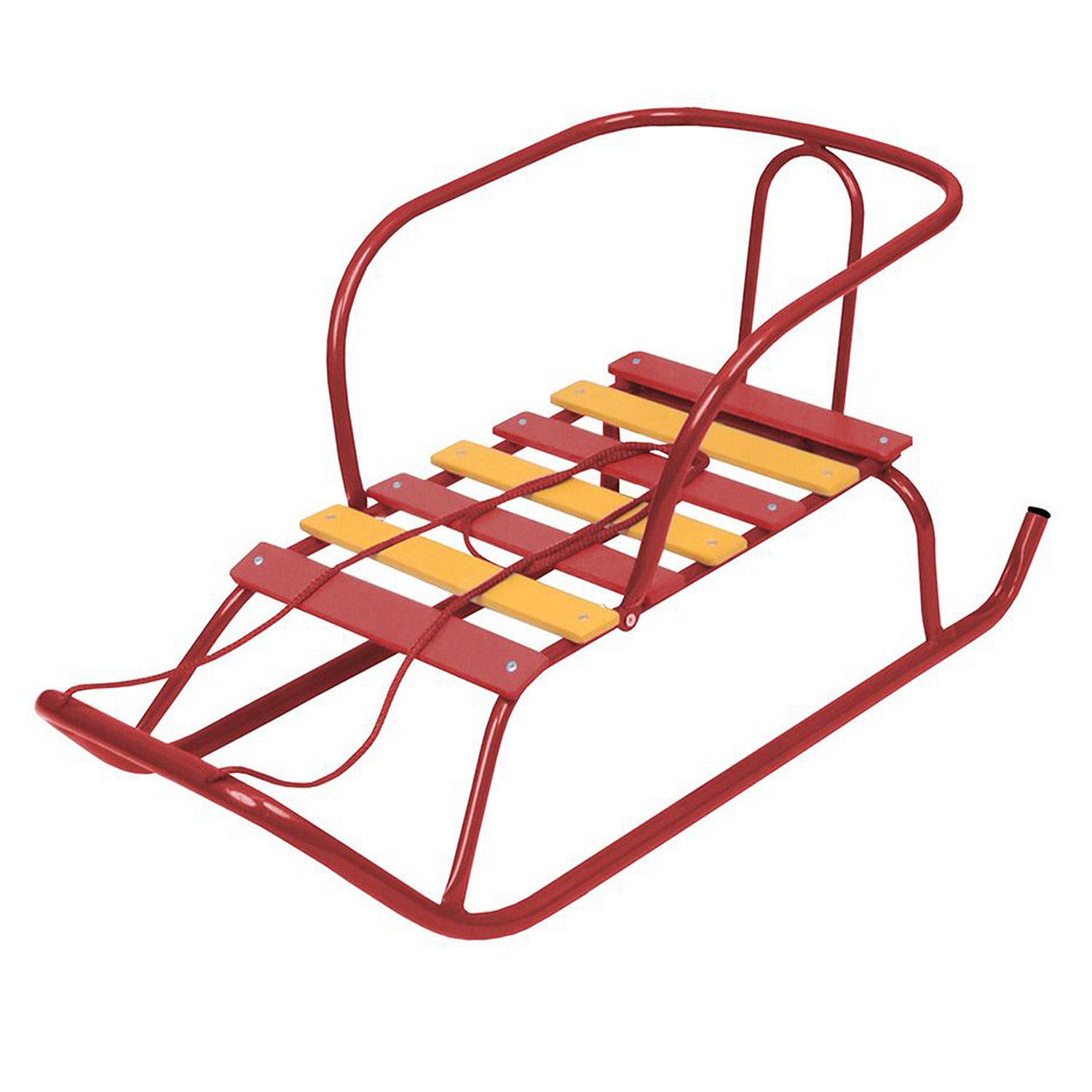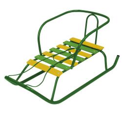 Каркас выполнен из металла, который выдерживает активные катания и долгие зимы. Полозья обеспечивают хорошее скольжение по снегу, а удобная спинка помогает ребёнку сохранять комфортную посадку.