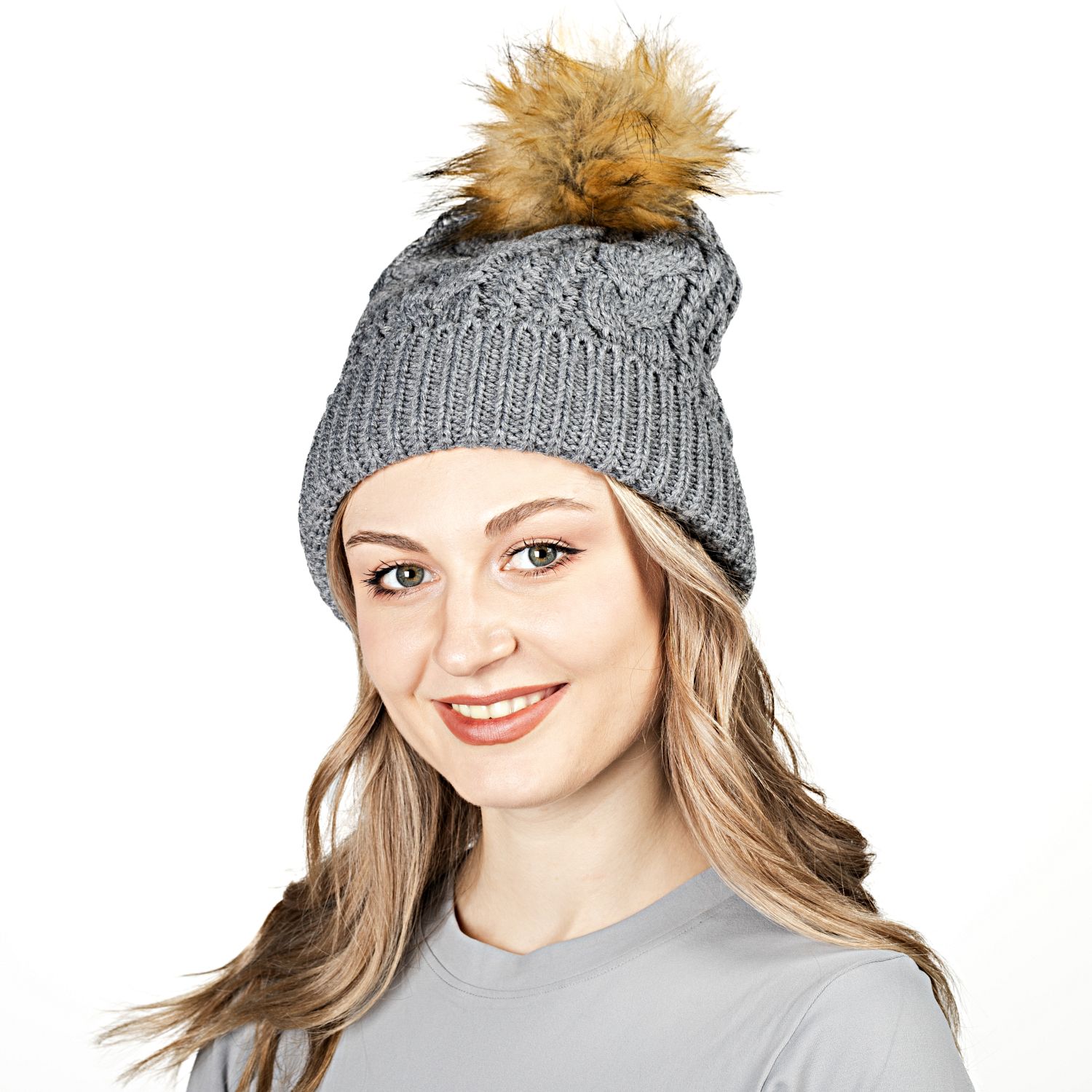 Шапка (обхват 54 см) модель DRC22HK072, светоотражающая, цвет - серый с бежевым.