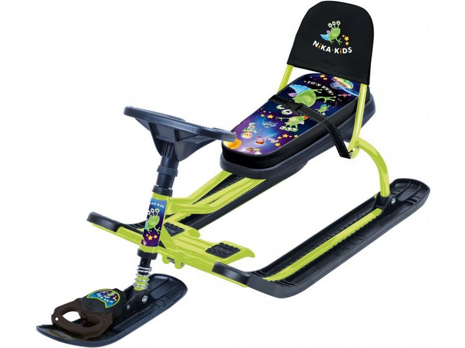 Снегокат Тимка спорт 2 С пришельцами, лимонный каркас /Ника/ 290мм, зеленый